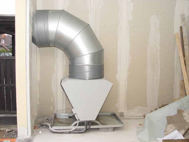 unsere KWL in die Garage verleget. Die ausgeblasene teilweise